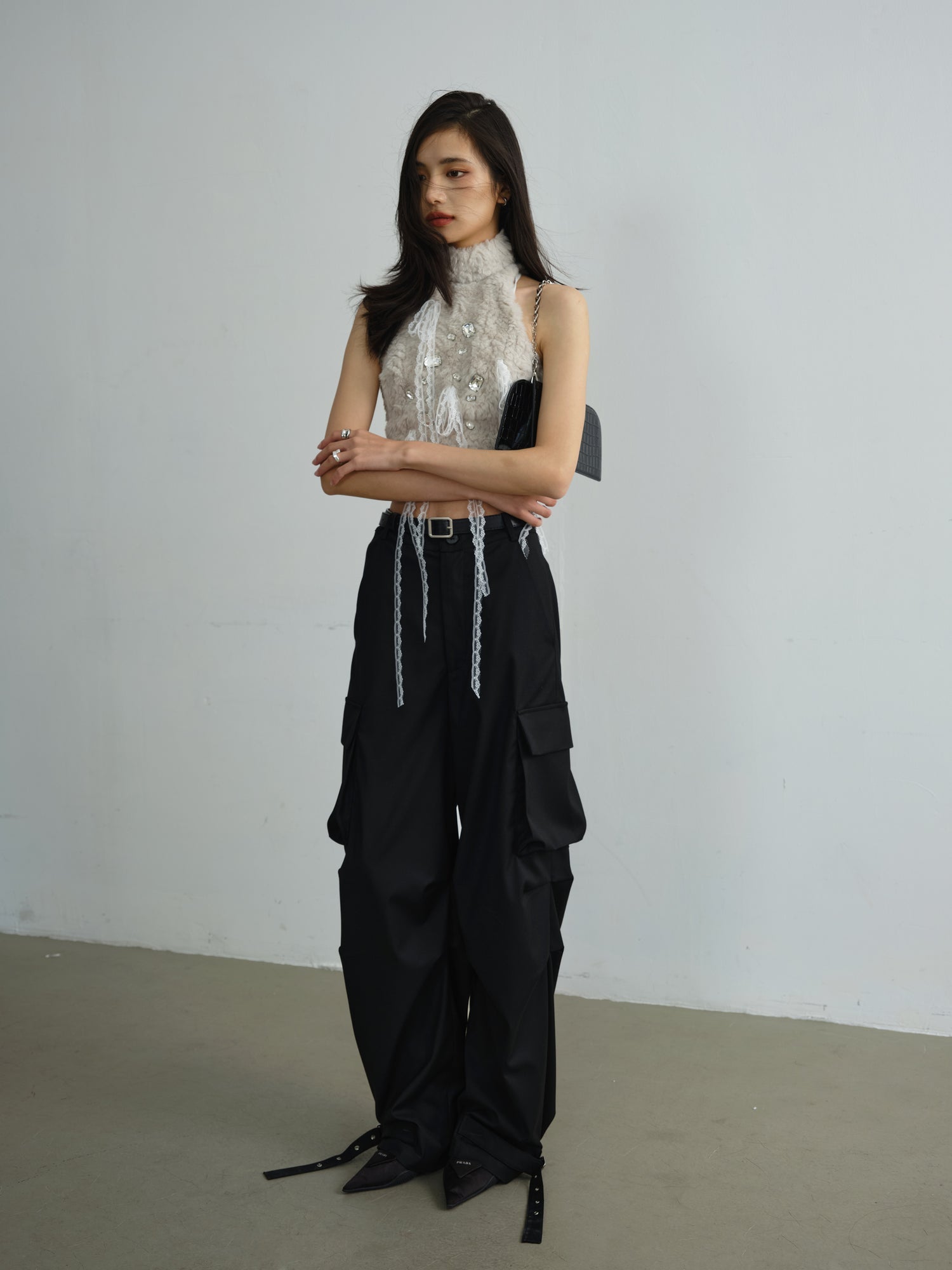 Upgrade your wardrobe with our Fur Lace Tassels Rhinestone Tank Top. Made with high quality material, this halter neck top is guaranteed to add a touch of luxury to any outfit. But hurry, with limited pieces available, you don't want to miss out on this fur-ocious must-have.