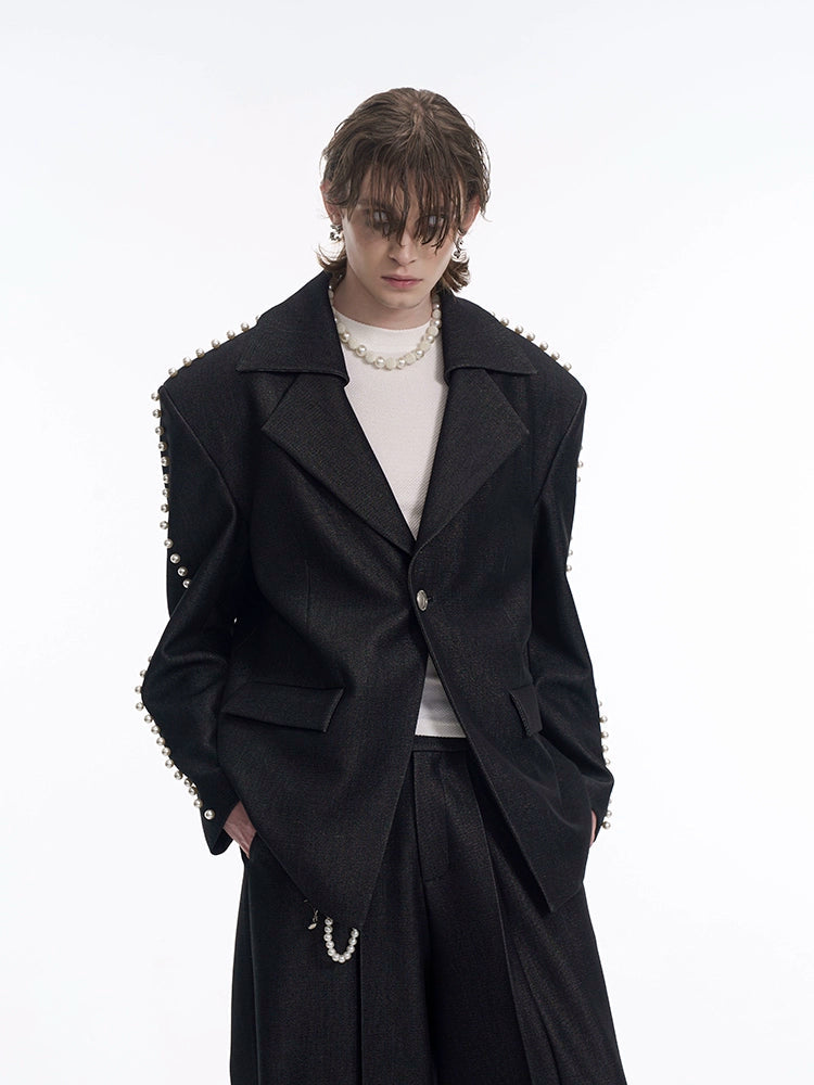 Crafted with precision and style, our Pearl Decorated Loose Blazer combines elegance and sophistication. The tailored silhouette and luxurious pearls and shoulder-pad design add a touch of glamour to any outfit. Perfect for every occasion, this blazer is a must-have for any fashion-forward individual.